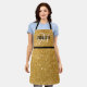 Chic gold glitter white script monogrammed black name apron. Personalise with your name and initial.
