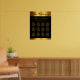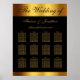 This elegant black and gold seating chart features faux gold calligraphy with the bride and groom's names guest names to personalise with a faux gold border on black background. Fits up to 12 tables. Designed by Susan Coffey.