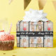 Customize your own black birthday wrapping paper with a modern 5 photo collage. Add the person's name and year in white script above the five photographs for chic personalized gifts for an adult or teen.