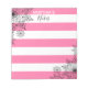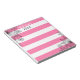 Keep track of all your important notes with this stylish personalised notepad. The design features black floral mandalas on a horizontal pink and white stripes.The text is fully customisable.