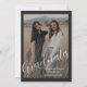 Share the joy of a high school or college graduation with these custom 2 photo of graduates black background gold and white announcements.