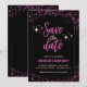 Pink 86th birthday invitations Save the date black Glam chic glitter sparkle