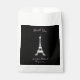 This chic, feminine design features a white image of the Eiffel Tower on a black background. Your message appears in elegant pink French lettering. An easy way to add the style of Paris to your party with these stylish favour bags.