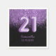 Black and purple birthday napkins. Featuring stunning purple glitter and purple 21 in balloon typography all on a black background. Easy to customise with your details.