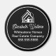 These professional realtor magnets are custom made with your real estate company name under the modern cursive script and house image. These elegant black realty business promotional item labels feature a house logo image for home builder or realty agent company marketing.