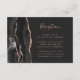The left-hand edge of this elegant modern wedding reception enclosure card features a black watercolor agate border trimmed with faux rose gold glitter. The title is in handwriting script, with the customisable text below in rose gold coloured copperplate font on a dark charcoal grey background. The reverse side features a matching black and rose gold agate design.