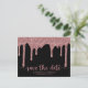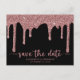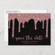 Chic Black Rose Gold Glitter Drips Save The Date Announcement Postcard