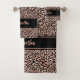 Chic Black Rose Gold Leopard Print Personalised Bath Towel Set