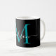 Elegant Black Teal Green Monogram Girly Script Stylish Coffee Mug