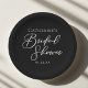 This elegant black bridal shower party paper plate features beautiful white typography for an evening party in the winter. Minimalist script is a modern trend for a contemporary bride.