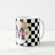 Chic Black & White Checkered Pink Floral Monogram Coffee Mug