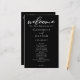 These chic custom black wedding programs feature elegant personalised white typography and a minimalist layout for your winter evening ceremony. Add your bridal party details on the back.
