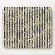 A chic black and white stripes with modern elegant faux gold tropical leaves floral on white background.
