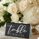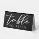 Chic black table number table tent signs with minimalist white typography. Customise each number and order for an elegant evening wedding reception.