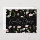 Chic Black Wild Flower Boho Garden Wedding RSVP Invitation Postcard