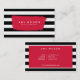 Modern and chic pink, and black and white stripes card. This stylish elegant social media business card is ideal for various professions especially creative professionals that have an online social media pressence: Writers, Bloggers, Interior Designers, Fashion Stylists, Photographers and Freelancers. It is easy to customise; you can easily replace the placeholder text to add your own information. For more options such as to change the font and its size click the "Customise it" button. *Please note that the Zazzle Watermark that appears in the zoom preview will not appear on the final printed product ©Rosewood and Citrus