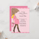 Start you sweet baby girl baby shower off right with our modern blonde mum to be holding a brown and pink polka dots umbrella set on a pink polka dots background. Visit our shop for a large selection of baby shower invitations for a baby girl baby shower.