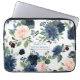 Chic Blooms | Navy Blue and Blush Floral Monogram Laptop Sleeve