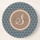 Chic blue abstract geometric pattern monogram coaster