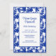 Elegant, chic design featuring a beautiful and modern floral pattern in azure blue. Delicate blue frame and elegant fonts for birthday party invitation details and customisation.
