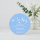Stand out with this chic baby blue typographic oh baby shower invitation. This circular invitation card has a minimalist design for modern parents. With its cute little motif, it's perfect for a baby boy announcement card or for hosting a shower party honouring a new parent.