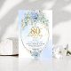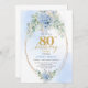 Chic Blue Floral Gold 80th Birthday Invitation
