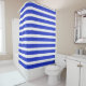 Chic Blue Geometric Stripes Shower Curtain. Modern, popcorn anime style, festive refreshing fashionable, elegant design, chic and sophisticated, fun design