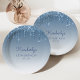 Chic Blue Glitter Drip 50th Birthday Party Paper Plate
