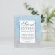 A modern, pretty chic and elegant faux blue glitter shower ombre with pastel blue glitter colour block Sweet 16 birthday party invitation with blue ombre pattern fading onto a light blue background , affordable low budget party .