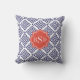 Chic blue greek key geometric patterns monogram cushion