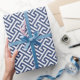 Chic blue greek key geometric patterns monogram wrapping paper