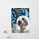 This vibrant blue Christmas card features a beautiful Christmas tree with stars and snowflakes holiday print with a modern arch shaped photo, and an editable personal message on a white background.
