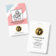 At the top of the badge is a photo template to upload photos with a size of 1,000 x 1,000 pix. The pink layout behind the photo will help if your photos have a white background. Below the photo are your prestigious name and job title. In the corresponding white layer, lies an optional gold figurine logo that you can use alongside its organisation name.
