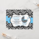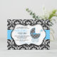 Chic Blue Polka Dot Damask Baby Shower Invite