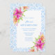 This beautifully designed invitation features a stunning watercolor illustration of a pink lily flower and a blue Portuguese Azulejo ceramic tiles frame. You can easily customise the text and include the celebrant's age to make it even more personalised. Share the joy with your friends and family and make this milestone birthday one to remember!