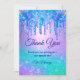 Chic blue purple ombre dripping glitter monogram thank you card. Shimmering cute glittery and chic downloadable thank you card. Perfect for sending out to family or friends for the holiday season or any other occasion like weddings, birthdays, baby showers, wedding showers and bachelorette parties. To make it extra special it is embellished with beautiful faux glitter. This design can also be transferred onto any product on zazzle. You can personalise it with your own text and information.