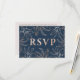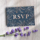 Chic Blue & Rose Gold Foliage RSVP QR code Wedding Card