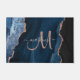 Chic Blue Rose Gold Glitter Agate Custom Monogram Doormat