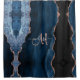 Chic Blue Rose Gold Glitter Agate Custom Monogram Shower Curtain