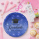 Chic blue sparkle graduation party paper plates for a fancy high school or college graduate with your custom senior name and class in the centre. Personalise this trendy party decor for a modern university grad.