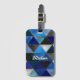 Chic blue turquoise grey geometric luggage tag