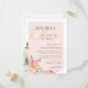 Elegant bridal shower by mail postcard invitation featuring a faux gold foil script against a blush pink overlay with beautiful watercolor peonies and roses in shades of peach and cream. Your details are displayed with a simple, stylish typography. Simply click on "Personalise this template" and start adding your own details.