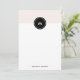 This chic, elegant stationery features a soft blush pink border, with your monogram in a central black circle, and your name at the bottom.