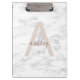 Chic Blush Pink White Marble Script Name Monogram Clipboard