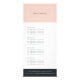 Elegant colorblock rack card design displays your services, price list or business information beautifully. Design includes four customisable headings and body text fields, and space for your business contact information along the bottom, framed by wide bands of blush pink and charcoal at the top and bottom. To adjust layout, enter your text and then use the Customise function to change positioning and font sizes.