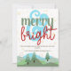 Our card’s minimalist and rustic charm is accentuated by modern and elegant script typography, featuring the phrase "merry and bright" in green and red with a bold, light blue ampersand. The pastel colours and bohemian style create a retro vintage aesthetic that is both stylish and trendy, making this card a standout choice for your holiday greetings.