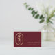 Chic Bohemian golden floral logo, professional business cards. Soft faux golden foil frame with line-art floral stem and delicate hand on burgundy background. Template text lines for all of your contact information on back.