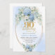 Chic Boho Blue Hydrangea Floral Gold 90th Birthday Invitation
