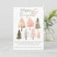 Elevate your holiday greetings with our unique Christmas photo card featuring a double-sided design. This modern and minimal holiday card showcases a charming boho style with hand-drawn Christmas trees in non-traditional pastel colours of pinks, blush, light grey, and grey. The front of the card elegantly displays the festive phrase "Merry & Bright" with a pink ampersand, using stylish script typography that adds a chic and best touch to your greetings.