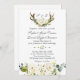 Chic Boho White Cream Flowers Antlers Wedding Invitation